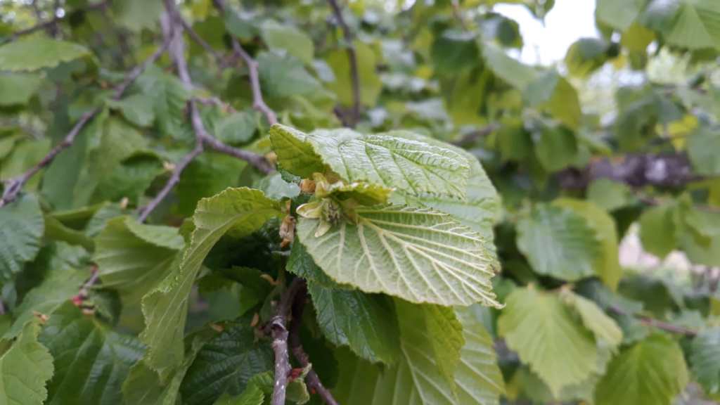 ” Abbiamo finito la potatura che è durata da novembre, abbiamo finito la concimazione con pellet di stallatico e adesso decespugliamo, cioè togliamo l’erba. In questo momento la pianta sta mettendo le foglie e cerca di maturare, è in fase di crescita. La fioritura è già avvenuta a settembre, poi è stata impollinata fra gennaio e febbraio – quest’anno presto perché faceva bello – e adesso ci sono già i fiori impollinati, ci sono già le nocciole sotto forma di fiori però, dire che siano nocciole piene o vuote, si vedrà poi a luglio. La pioggia di questi giorni va bene perché quest’anno è piovuto poco, prima. Quindi in campagna, in questo periodo, si tratta di tener pulito, in laboratorio ho il lavoro consueto. Lavoro le nocciole che ho raccolto a settembre dello scorso anno e che però tra un mese finiranno. Quest’anno finisco la produzione a maggio e poi bisognerà aspettare il nuovo raccolto”.