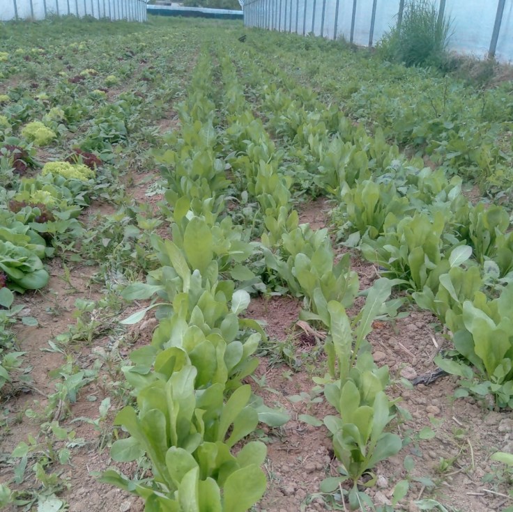 Per raccogliere ora la cicoria spadona, abbiamo seminato, fatto gli alveoli, i piantini, quest’anno li abbiamo messi tardi perché ci siamo sbrigati più tardi a fare i piantini. La cicoria spadona si potrebbe avere anche dai primi di marzo tranquillamente perché tiene bene anche il gelo. Prima la metti, prima fai dei ricacci. Adesso bisogna vedere quest’anno, perché facendo il primo taglio adesso,potrebbe anche esserci il rischio di non fare tanti tagli, che vada subito a seme. È una pianta meno vocata alla salita seme rispetto alla rucola, comunque è una pianta che va a seme abbastanza velocemente. Fatti i piantini, che ci hanno messo più o meno un mese a venire, l’ho trapiantata, ho tolto una volta l’erba in mezzo e poi adesso la raccolgo. La cicoria spadona da noi viene abbastanza bene, se uno avesse il mercato ne potrebbe fare anche 20 serre perché è una verdura che richiede pochissima manutenzione, e da noi viene molto buona.