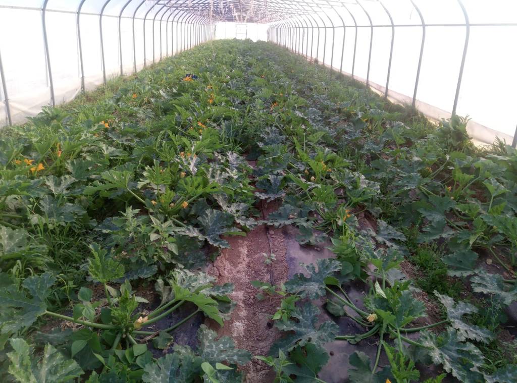 Per adesso ne ho messi circa 700 piante sotto 2 serre poi ne metterò ancora una adesso, anche se adesso andrebbe bene metterle fuori, ma non ci sono ancora le condizioni per piantarle fuori. Li ho messi a metà marzo più o meno, non è ancora praticamente iniziata la stagione perché stanno ancora crescendo poco, sta facendo freddo e quindi abbiamo ancora delle piante abbastanza indietro per essere il 10 maggio. Al momento sto raccogliendo ancora degli zucchini molto piccoli. È anche vero che io non effettuo concimazioni, non è che li bagno molto comunque al momento è una produzione davvero scarsissima. Questo dipende fondamentalmente dalle temperature esterne, soprattutto quelle notturne in quanto la pianta di zucchino tende a crescere durante la notte, quindi se ha una certa temperatura, sopra certi gradi durante la notte, al mattino quando li raccogli ti trovi dei piantini più o meno grandi. Che poi non c’entra niente sul fiore, cioè io li raccolgo a fiore aperto e quindi nel “primo giorno”, ma è il fiore del secondo giorno: il fiore è sempre bello però ha attaccato uno zucchino che è veramente piccolo, che per carità è un pregio ma obiettivamente non riesci a farne dei quantitativi accettabili. Spero che questa coltura si riprenda un po’. Raccogliendo tutti i giorni o al massimo una volta ogni due giorni, devi avere un tempo un po’ più caldo per 5-6 giorni, una settimana per far partire bene la coltura. Al momento ci sono attaccati zucchini che raccoglieremo tra 4-5 giorni, però se continua a fare freddo praticamente ti rovini la produzione che avrai tra 3-4 giorni. Al momento non siamo per niente soddisfatti, poi quest’anno li ho messi inizialmente solamente in due serre, che sono poche per le grandi produzioni che servono a noi, con l’idea di svuotare delle serre e metterne delle altre poi alla fine le colture con cui dovevo sostituirle si sono prodigate più nel tempo e quindi adesso ne metterò stasera ancora un’altra serra e poi tra 5- 10 giorni conto di metterli fuori se migliora il tempo. Li ho sempre messi in pacciamatura per il controllo dell’erba, l’irrigazione è sempre a manichetta per il risparmio dell’acqua e poi perché lo zucchino si presta meglio a essere bagnato tramite manichetta.