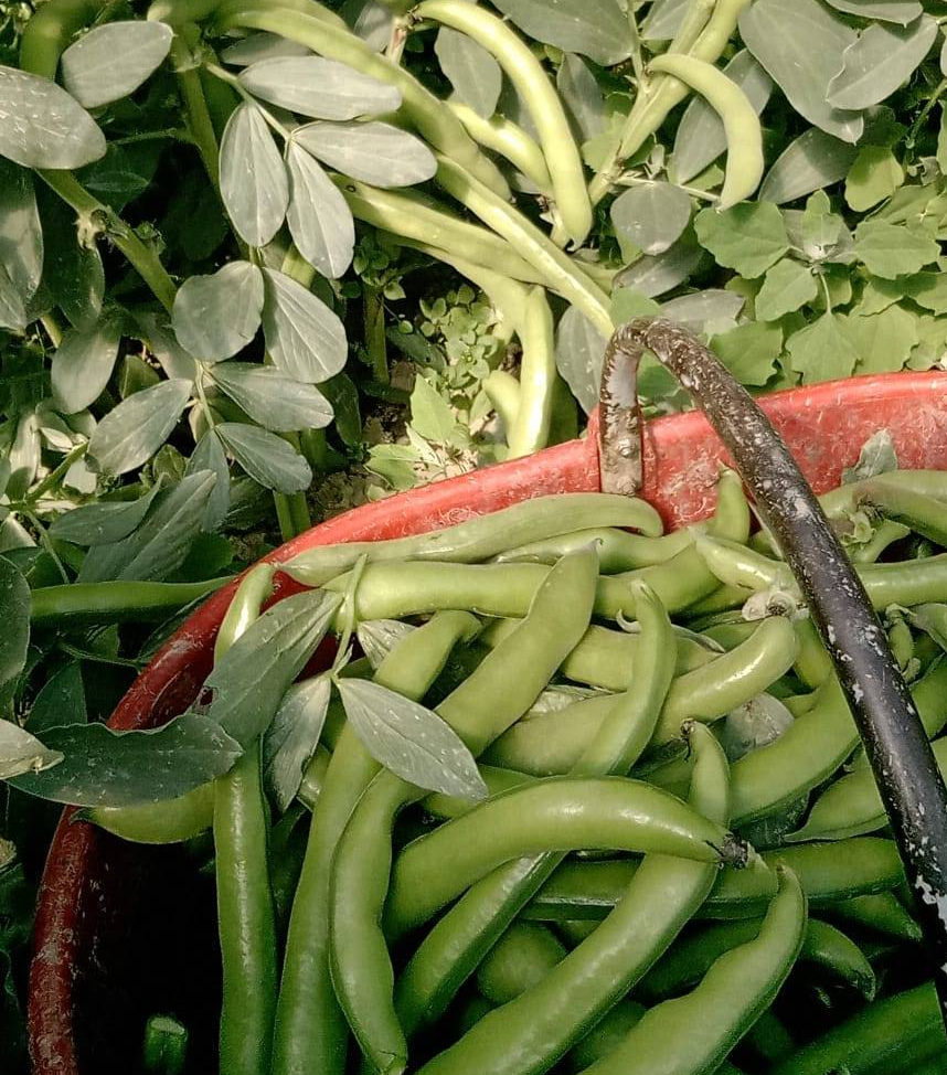 Le fave lo metto sotto serra perché sono più belle, le semino da novembre a febbraio, più o meno ogni due mesi. Adesso sto raccogliendo quelle che ho seminato a dicembre. Sotto sera sono più belle perché sono al caldo e protette dall’umidità. Le semino direttamente in terra. Le file sono anche 1 metro una dall’altra perché le piante vengono alte più di 1 metro. Da ogni pianta, se sono belle, raccolgo anche cinque-sei fave in due volte. Una pianta può anche arrivare a fare otto fave. Un po’ di erba viene sempre quando si bagna a pioggia tra le due file, però pazienza. Le bagno prima di raccogliere, adesso è una settimana che non le bagno più. Per comodità le ho bagnate a pioggia per non tirare la manichetta. Se no di solito metto la manichetta Quest’anno è andata bene, non ha fatto tanto freddo. Di solito raccolgo quattro ceste all’ora, circa 50-60 kg. Il raccolto che sto facendo ora dura circa due settimane. Le prossime le avrò tra circa un mesetto, inizio giugno, poi dipende dal clima, adesso fa di nuovo freddo. Come varietà adesso c’è la fava marocchina. Mia mamma le incesta, sono già pulite.