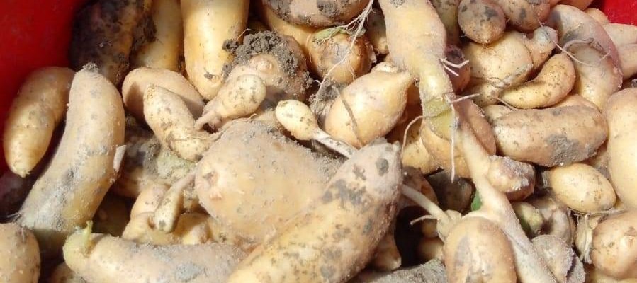“È un prodotto primaverile, sono tipiche di Moncalieri. Il seme un po’ lo faccio – racconta Doriano Busso -un po’ lo compro: prima metto le mie, poi in ultimo compro il seme, magari ne lascio un pezzo da semi per l’anno dopo. Cioè lascio maturare la pianta che secca, lascio una fila da togliere, viene la patata dura in poche parole. La tolgo poi a luglio e la semino a gennaio. Da seminare vanno bene un po’ tutte tranne quelle piccole. Questa è una patata che rimane piccola. E’ una varietà più dolce delle altre, tenera, perché si raccoglie prima della maturazione. Non è un’altra patata novella, è una qualità molto gustosa. La pianta è come quella delle altre patate, la coltivazione è uguale. Quest’anno ne ho messe 800 mq. Il raccolto mi dura poche settimane perché fanno in fretta a maturare. Il lavoro per piantarle e raccoglierle è tutto manuale. Secondo la tradizione, queste patate si vendono anche un po’ sbucciate perché si lavano un po’ con l’acqua e quelle dove rimane un po’ di pelle si passano a mano. Il prezzo è più alto perché rendono di meno ed è tutto manuale. Ci sono piante che ne fanno 5 o 6, altre 15, dipende un po’. Ogni pianta fa ½ kg massimo. Certe non ne fanno neanche perché sono patatine piccole. Chi le conosce le apprezza molto, chi non le conosce dicono che sono solo patate e sono care. Siamo sempre meno chi la coltiva, un po’ perché sono poco conosciute e poi perché la manodopera è tanta.