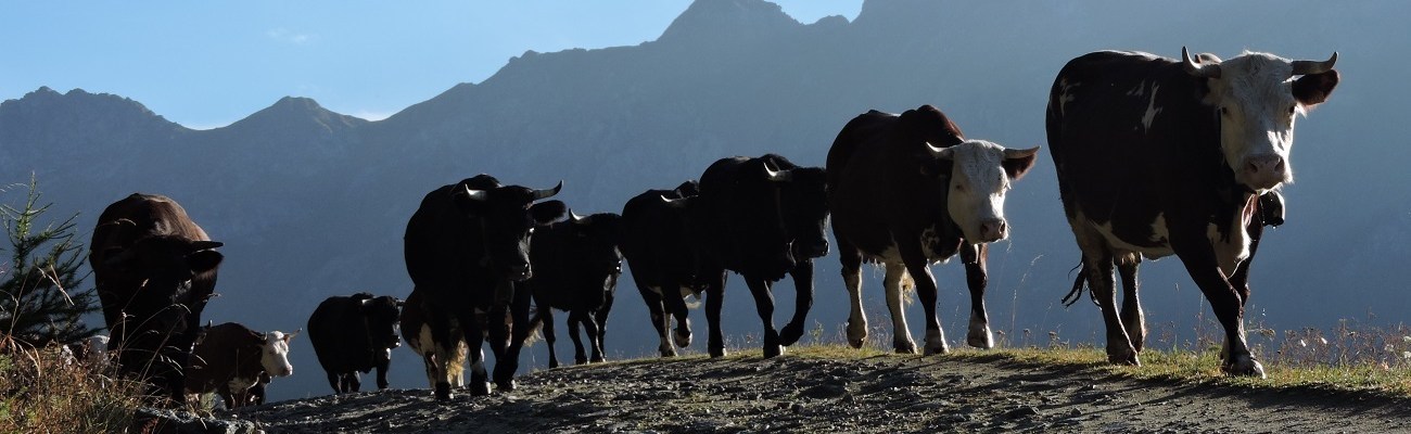 La poesia e il romanticismo ci sono, in alpeggio: li troviamo nella lenta fila delle vacche che rientra in stalla a passo cadenzato, facendo risuonare le campane, mentre le ultime luci del giorno lasciano il posto al crepuscolo.