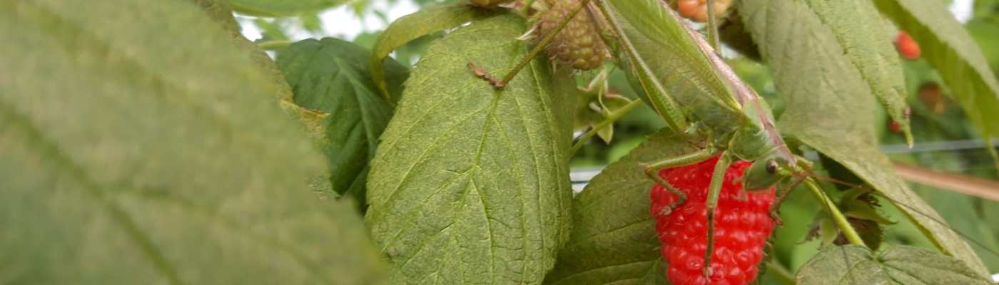 “Eccole – ci spiega Cathy – le cavallette che ci mangiano tutti i lamponi! Come dice il tecnico del biologico, vuol dire che non diamo porcheria. Però noi ne faremmo volentieri a meno, anche se siamo convinti della nostra scelta: nessun prodotto chimico sui nostri frutti! I nostri lamponi dal 31 gennaio 2020 saranno certificati biologici, ora siamo nel periodo di conversione. La produzione quest’anno è abbastanza buona, tenendo conto del tempo che non aiuta. Purtroppo, con il biologico, siamo invasi dagli insetti: adesso abbiamo messo la rete antinsetti e speriamo in bene. I lamponi li raccogliamo tutti i giorni, incominciamo la mattina presto in modo da staccarli sul fresco, perché quando batte il sole diventano più molli. Siamo 4-5 persone che raccogliamo, proprio per fare un po’ in fretta, dipende anche da quanti lamponi hanno le piante”.