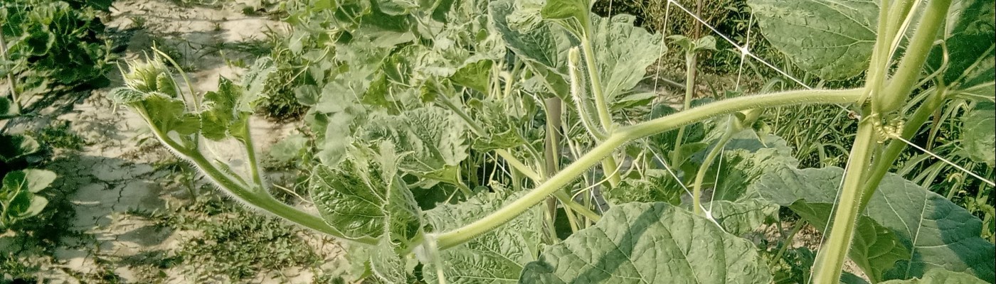 “Si piantano i piantini – ci spiega Mauro – io li ho comprati, ma si possono anche fare, è la zucca lagenaria, quella lunga. Si piantano le prime anche ad aprile, ma io li ho piantati tardi, a giugno. Si raccolgono le punte perché, sennò le zucche non vengono. Metto una pianta ogni 2,5 m. perché fanno tanta vegetazione. Ho messo la pacciamatura biologica di mais per l’erba e poi la manichetta perché hanno bisogno di tanta acqua. Poi hanno tutte queste punte che si legano su nella rete. Io le taglio quando sono lunghe mezzo metro. Ho fatto l’esperimento di mettere i tenerumi 3 anni fa, e ora ne metto un po’ tutti gli anni, è un prodotto tipico meridionale, dove fanno pasta, zuppa, minestra. Bisogna potarle regolarmente, in teoria raccolgo tutte le settimane, poi si fa quel che si può. Raccolgo da adesso finché la pianta non prendere malattie, perché sono piante abbastanza delicate in autunno. Raccoglierò le zucche più o meno tra un mese, adesso sono piccole piccole. Ci vuole tanto tempo, mentre raccolgo faccio il mazzo. I tenerumi sono buonissimi per condire la pasta, secondo la classica ricetta siciliana”.
