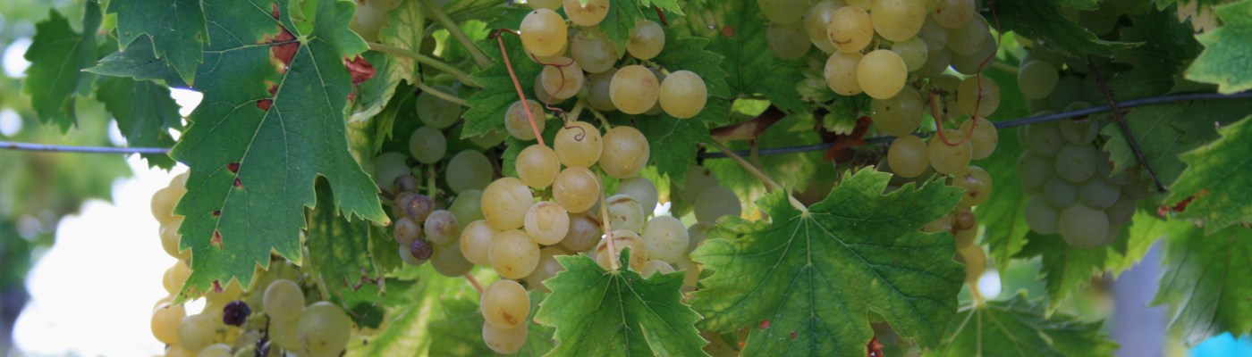 Pela le patate, mettile in una pentola con acqua fredda e portale a ebollizione. Quando sono cotte, scolale, tagliale a fette e condiscile con olio extravergine di oliva, succo di limone, sale e un mix di origano, timo, maggiorana. Trasferiscile su un piatto da portata e cospargile con acini di uva bianca tagliati a metà.