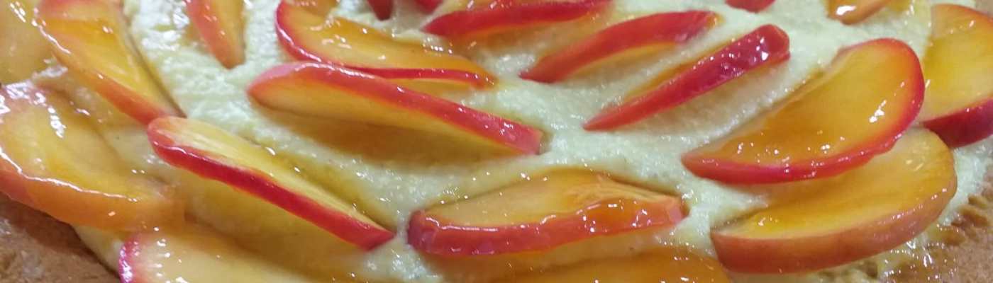 Bagna il Pan di Spagna, metti la crema, posiziona le mele e spennella con la marmellata.