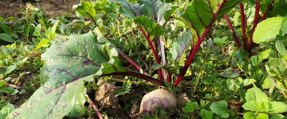 Dopo alcune settimane, le barbabietole vengono diradate, perché il più delle volte c’è bisogno di lasciare una sola piantina per ogni buchetta; una volta fatto questo si continua a tenerle pulite dall’erba e poi, quando raggiungono una dimensione sufficiente, di solito 5-6 cm di diametro come minimo, cominciamo a raccoglierle.