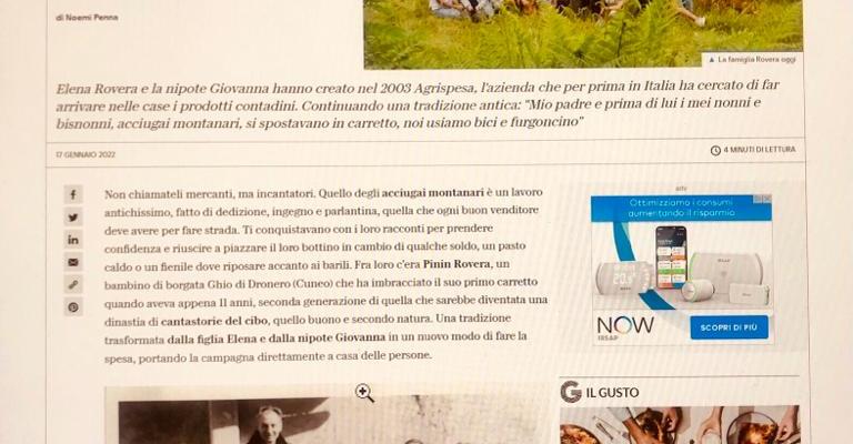 Il Gusto, La Repubblica, 17 gennaio 2022 ha scritto di Agrispesa e dei nostri racconti di agricoltura contadina. Siamo molto contenti! 😊