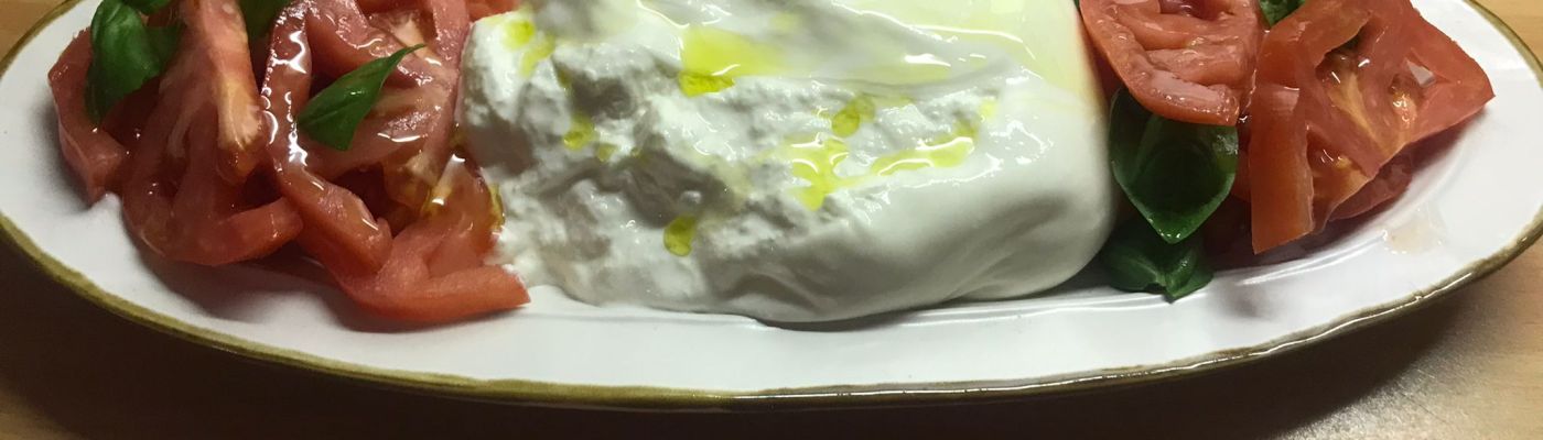 Lava i pomodori, tagliali a fette e disponili su un piatto da portata. Aggiungi la burrata e delle foglioline di basilico fresco. Condisci semplicemente con Fior di sale e olio extravergine di oliva.
