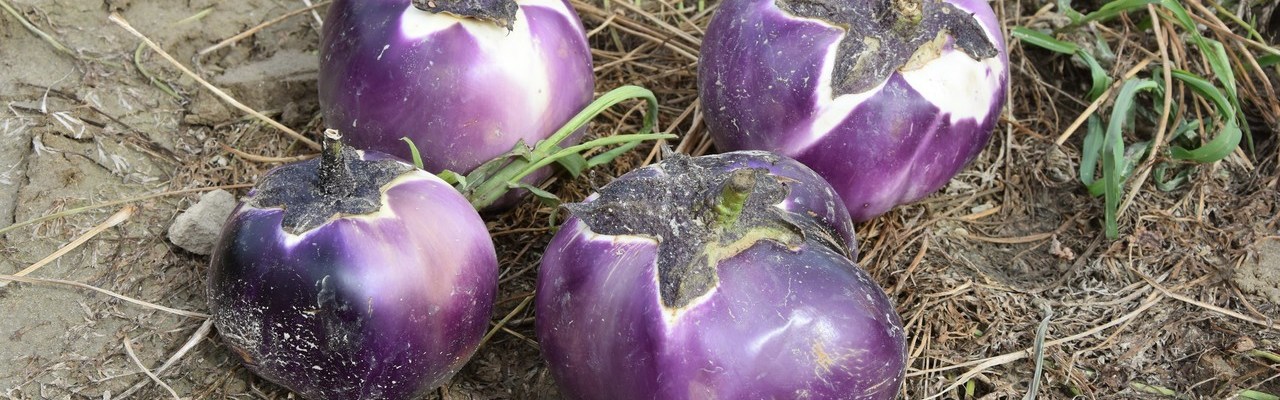 Lava e asciuga 2 melanzane e 1 zucchina a trombetta.