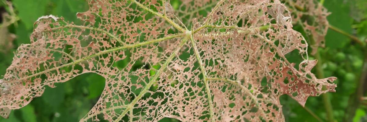 Divora letteralmente le foglie e le parti verdi di diverse tipologie di piante, dalle viti alle colture orticole. Non lascia nulla, solo le venature.