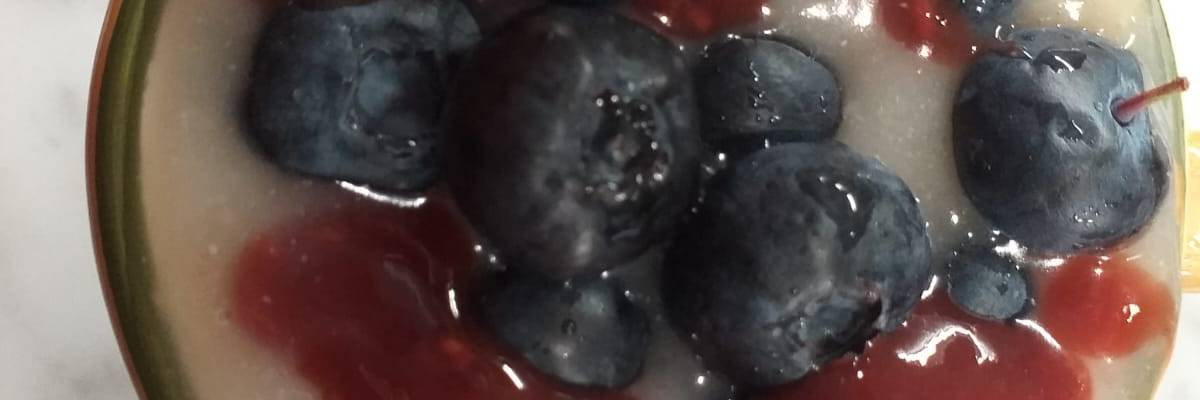 Tirare fuori i due kanten e con un frullatore frullare aggiungendo ½ cucchiaio di crema di mandorle a ciascun composto. A questo punto saranno disponibili due mousse che possono essere servite a strati in una ciotolina: sotto metteremo il kanten ai frutti di bosco e sopra quello al limone. Infine si può decorare con del ribes.