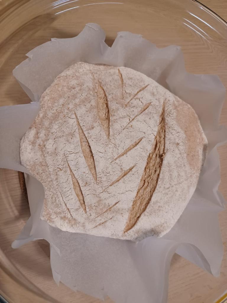 Per simulare la cottura di un forno professionale si può ricorrere all’utilizzo di una pentola pyrex, o ghisa o terracotta o acciaio inox munita di coperchio. Quando il forno avrà raggiunto la temperatura desiderata inserire la pentola in cui si cuocerà il pane per riscaldarla bene prima di inserirvi il pane da cuocere. Riscaldare sia il coperchio che la pentola. Mettere la pagnotta con la cartaforno nella pentola calda. Coprire e mettere in forno. Cuocere con coperchio per 20 minuti.