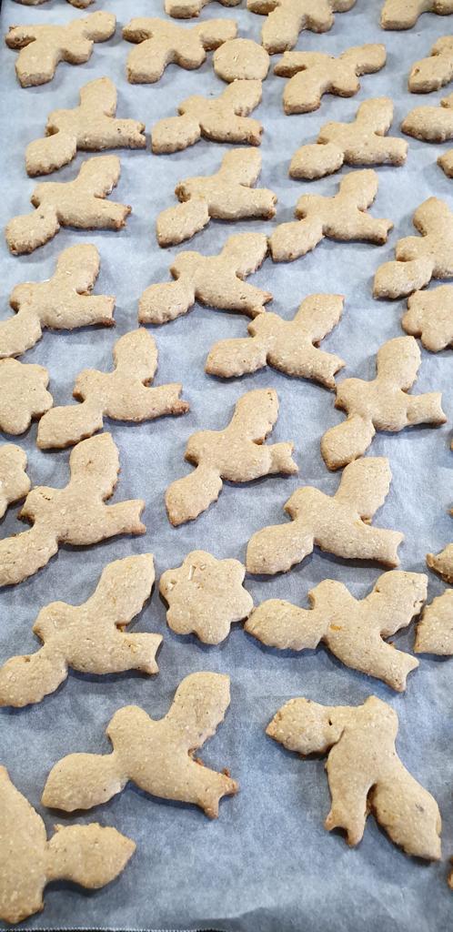 Con l’aiuto di una formina ricavate i biscotti e metteteli su una teglia da forno e cuocete in forno già caldo a 180°C 14/15 minuti e comunque finché non saranno belli dorati. Controllare la cottura passati 10 minuti. Dovranno risultare dorati sotto, cotti ma leggermente ancora morbidi appena tirati fuori dal forno. Dopo diventeranno belli croccanti.