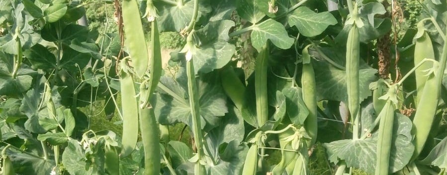 A febbraio abbiamo seminato una varietà di piselli nani, cioè una varietà che non ha bisogno di supporti, non è rampicante, non mettiamo le reti, quindi restano alti circa 1 metro, restano in piedi, ragionevolmente eretti come postura, poi magari su vanno un po’ addosso l’uno con l’altro, però sono comunque più facili da gestire nel senso che non hanno bisogno di supporto per crescere. Vengono seminati normalmente senza pacciamatura, messi direttamente a dimora, sono i legumi che germinano con la temperatura più bassa, infatti, sono i primi ad arrivare. Possono anche essere seminati in autunno perché sopportano facilmente il gelo.