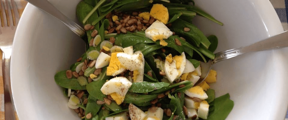 Insalatina, cipollotto, uovo sodo e semi di girasole tostati e … Buon appetito!