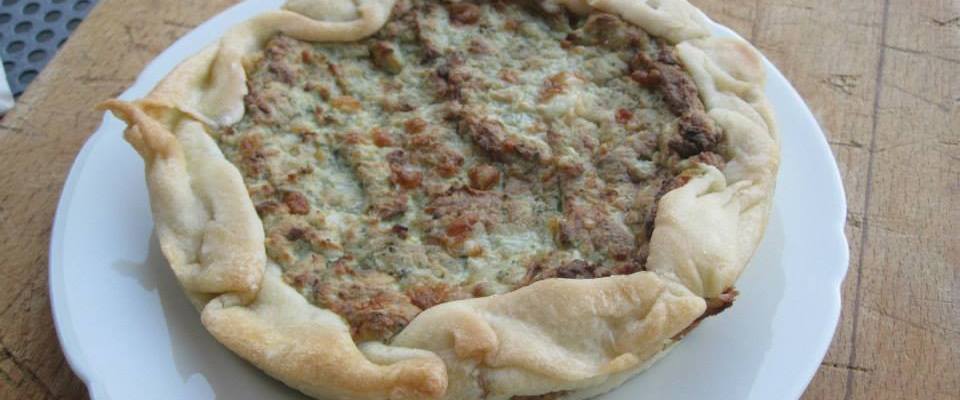 Stendi la pasta con il matterello, trasferiscila su una teglia rivestita con carta da forno e farciscila con l’impasto, ripiegando bene i bordi. Fai cuocere in forno a 180° per circa 45 minuti, finché risulterà dorata.
